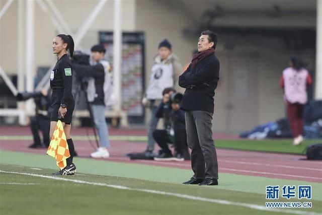 12月10日,中国队教练贾秀全在场外观看了比赛。那一天,在2019年韩国釜山东亚杯女子足球赛中,中国队与韩国队打成平局。新华社记者张可仁