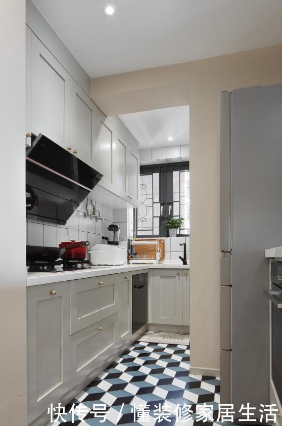 里面的炒房空实际上在外面打开了一个迷你阳台和一个l形橱柜。虽然整体面积很小,但是炒菜线连接得很好。一个人洗碗,一个人不拥挤地做饭。