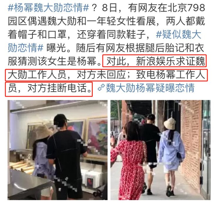 根据女孩后腿上的伤疤,一些网民推测是小杨。针对这一事件,一些媒体要求魏大勋的工作人员予以确认。对方直接挂了微信电话,然后媒体要求迷你阳的工作人员确认。另一方没有回应,也没有回应。