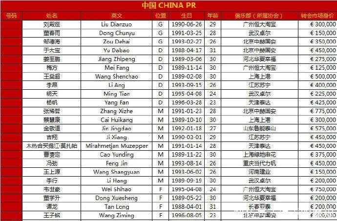 中国队的平均年龄是27.78岁。商标价值874.5万欧元。
