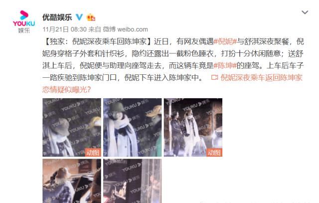 因此,人们经常报道两人是否相爱。前天21日,一些媒体透露倪妮和陈坤在意料之中。倪妮那天晚上第一次和舒淇共进晚餐。送好朋友舒淇上车后,倪拐进陈坤的车,和陈坤一起回家,整晚没出来。然后丑闻爆发了,两个人相爱住在一起。