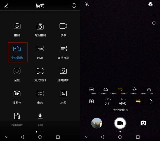 除了在拍摄照片时选择专业模式,您还可以在录制时使用专业模式进行录制。