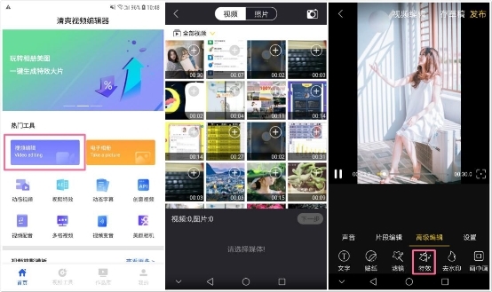 单击软件上的[视频编辑]并添加视频。这里有一个非常有用的[视频特效]功能~