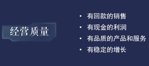 什么是高质量发展?我认为它可能围绕四个方面:第一,经营质量,第二,财务质量,第三,组织质量,第四,发展质量。