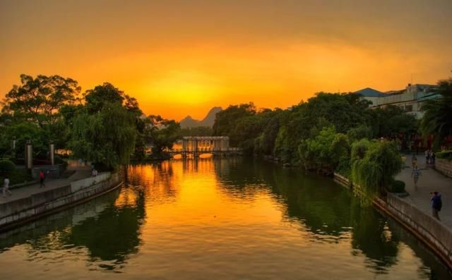两河四湖是指漓江、桃花江和山湖、榕湖、桂湖和龙牧湖。这个古老的城市水系出现在南宋时期的鹦鹉山崖石刻《荆江府城市地图》中。南宋诗人用“一水环城”来描绘桂林的城市景观。自1999年以来,桂林在三年内完成了城市周边水系的疏浚和改造,两江四湖再次成为旅游景点。
