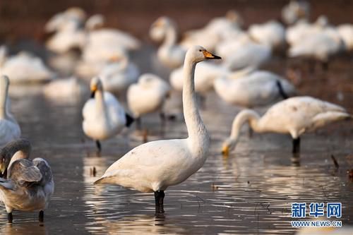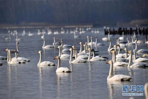 12月13日,山西平陆黄河湿地上,白天鹅在游泳。在过去的几天里,许多白天鹅飞过山西平陆的黄河湿地过冬。山西平陆黄河湿地位于山西省和河南省的交界处,占地6000多公顷。气候温和,食物摄入丰富,非常适合白天鹅越冬。每年秋末冬初,白天鹅从遥远的西伯利亚来到这里生活和过冬。新华社记者展颜