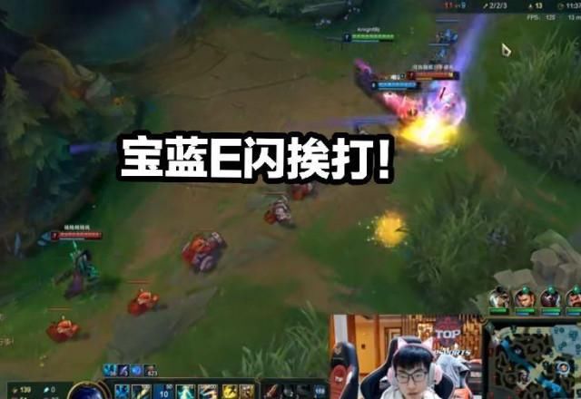 在第11分钟,蓝宝石蓝不知道是否收到了来甘克的信号,所以她勇敢地用e flash冲上去,但VN跟不上,因为太远了。骑士只是轻轻地后退了几步,然后开始反击。撤退时蓝宝石蓝被打成了半血。这时,她刚刚看到对面击球手的影子。