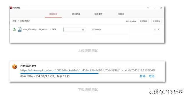 北京大学表示,由于网络磁盘的硬件性能和校园网千兆接入环境的支持,北京大学网络磁盘的上传和下载速度具有明显优势。上传过程中,网络磁盘也可以自动分析相同的文件,达到“二次传输”的目的。