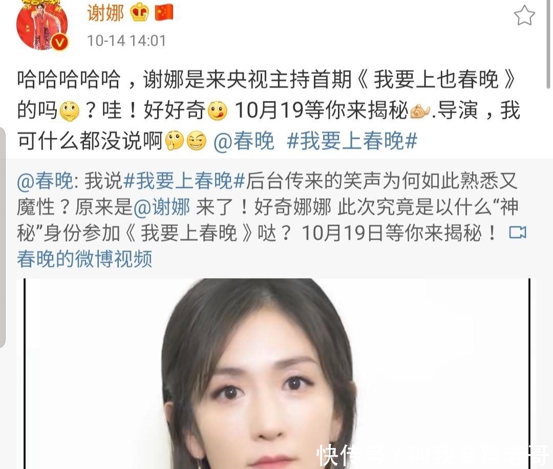 “我想去春晚”作为政府媒体推出的主流节目,可以说是普通艺术家实现梦想的舞台,因此公众也非常关注这个节目。成为这个节目的主持人也表明谢娜的实力已经被正式认证,谢娜不禁在社交平台上与粉丝分享好消息。