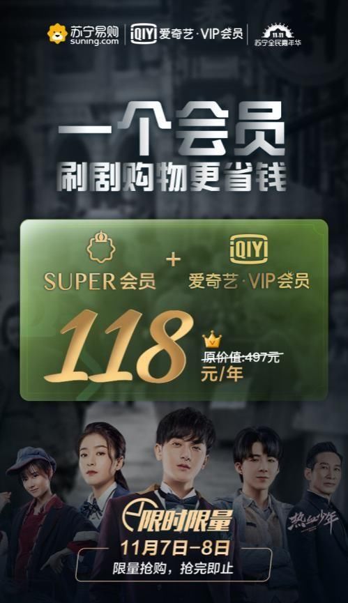 成为联名会员后,您可以分享苏宁超级会员(Suning SUPER member)和爱奇艺黄金会员(Aiqiyi Gold member)的60多项权益。然而,这一次苏宁超级会员艾奇艺(Aiqiyi)会员的“双会员”价格低到惊人的每年118元——每年497元,每年节省379元。