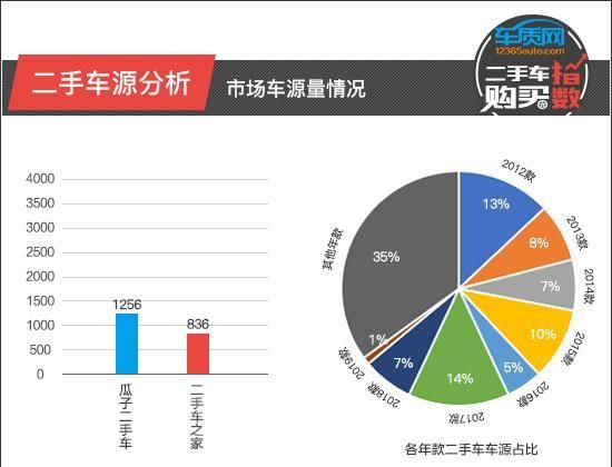 在选择二手车时,市场供应是否充足也是消费者关注的问题之一。如果有足够的车辆资源,一方面,消费者有更多的选择,另一方面,这也增加了进一步讨价还价的机会。但是,如果车辆来源相对不足或非常小,可能会对消费者是否继续购买车辆产生更大的影响。根据瓜子二手车和二手车屋平台数据,统计显示,目前2012-2019年SAIC斯柯达明锐全国二手车来源有:瓜子二手车来源1256家,二手车屋836家。其中,2012年、2015年和2017年二手车占据了最高的市场份额。此外,2012年之前的二手车也占据了一部分市场。