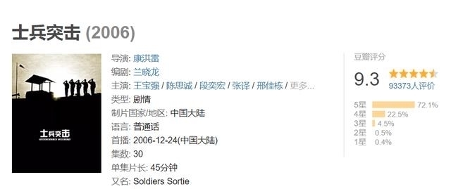 《士兵突击》是2006年上映的军事电视剧,由康洪磊执导,蓝小龙编剧,王包强、陈思成、段弘毅、张毅、邢家东、张国强、陈丽等主演。
