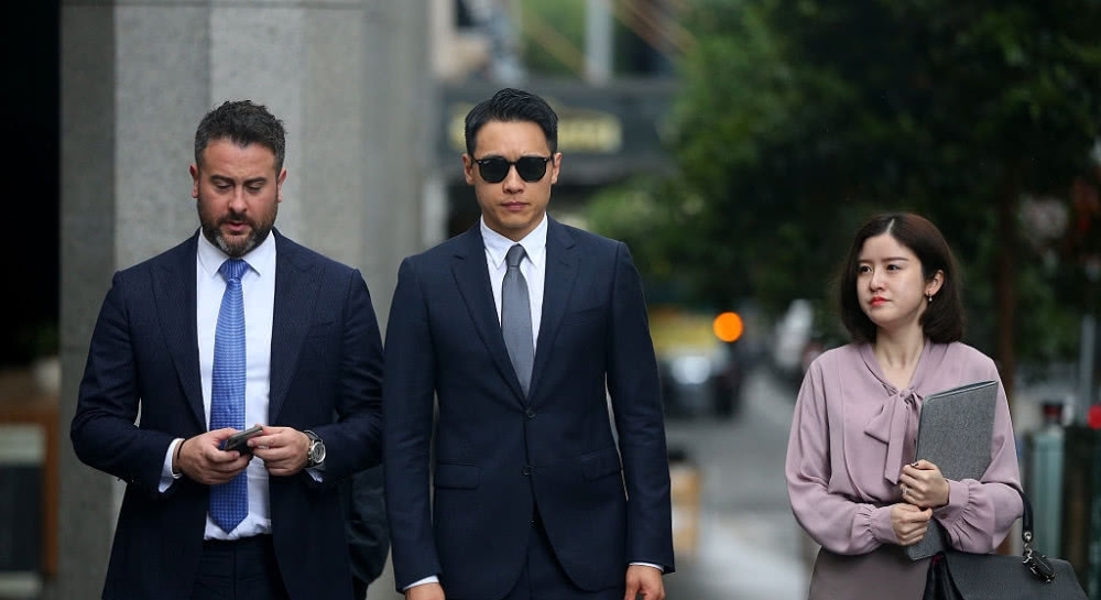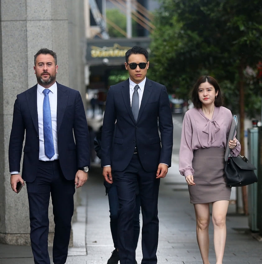 当地时间2019年11月5日,澳大利亚悉尼,高云翔审判进入第七天。高云翔戴着墨镜,穿着西装,在律师的陪同下悄悄地出现了。据报道,视频监控证据将于当晚在法庭上出示。这名妇女将继续通过视频出庭,她的丈夫将作为第二名证人作证。