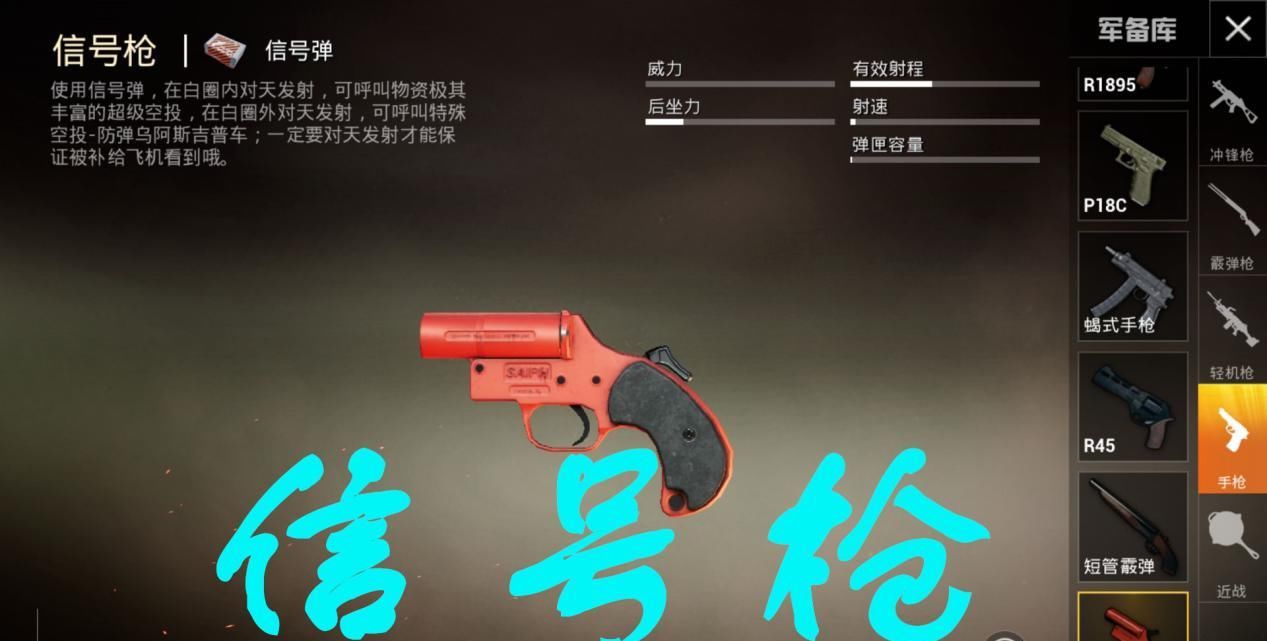 作为和平精英,你可以称之为超级空信号枪。我相信没有人能抵挡住这把枪的诱惑,但是你需要在一个安全的地方寻找稀有材料。在危险的地方,你需要特别注意那些需要车辆的小伙伴。此外,呼叫空信号弹是非常危险的,因为敌人会很快过来抓住天空中的信号弹。因此,你应该非常小心。然而,信号枪的声音必须被玩家喜欢!