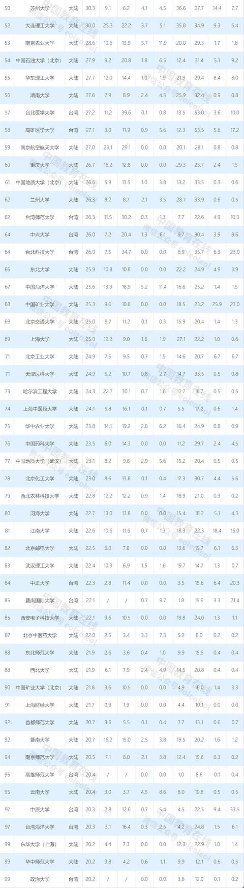 在的10大国际论文中,全部是中国大陆的大学,而在教师的前10名中,港澳台的大学占7(香港5)。
