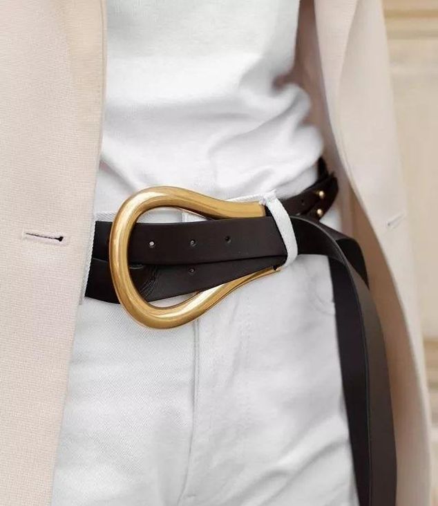 丹麦造型师Pernille Teisbaek已经输入了不同的尺寸和颜色。它充满了设计皮带金属环,让基本的黑色套装和黑色连身衣一秒钟都很好吃。