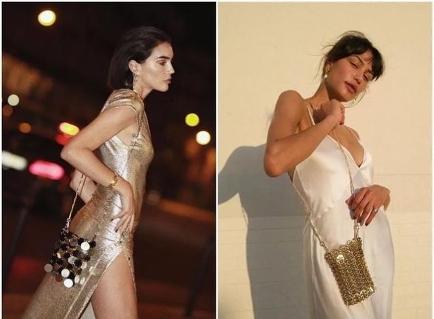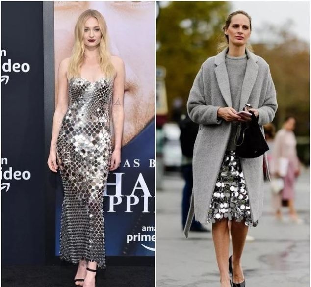 第一个来自帕科·拉巴尼(Paco Rabanne),由各种形状的金属亮片组成。