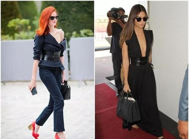 复杂的衣服也可以搭配。穿着同样的斯汀戈亚礼服,右边的博主考特尼·特罗普(Courtney Trop)添加了洛维腰封,这是最后的修饰。