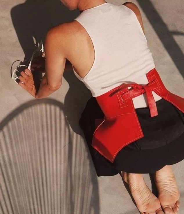 除了像挪威博主里克·克莱夫廷(Rikke Krefting)在左边使用BV腰带之外,你还可以像英国博主雷纳塔·贾兹齐克(Renata Jazdzyk)在右边使用Loewe腰封,售价990美元。