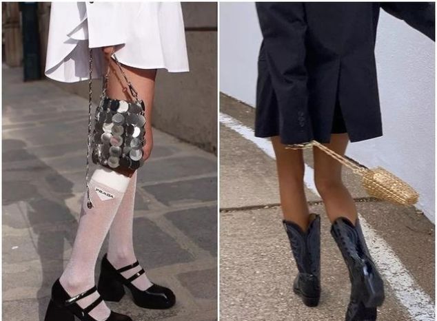 当然,没有必要坚持搭配法。丹麦造型师Pernille Teisbaek用它们来包裹套头衫和黑色背心,呼应了系在裤子底部的无肩带凉鞋。