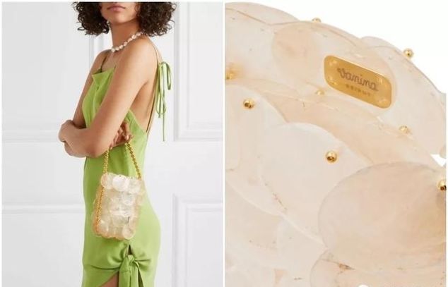 如果你不喜欢金属风,你岳母已经找到了替代品。黎巴嫩品牌Vanina的Casse-Noisette包(右下)结构相似,由贝壳盘制成,每个售价420美元。
