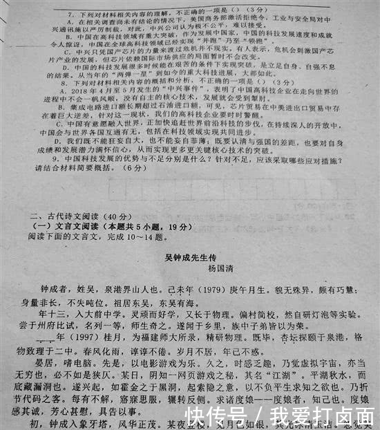 “哦,杨先生又发动了一次“突袭”。这次文言文阅读测试是同学们的聚会,我们还看了“微信”...前几天,就在泉港二中和二中的学生完成语文月考后,语文学科试卷中出现了很多关于文言文阅读考试“一味年返校颂”的讨论。这是学校语文老师杨国清最初的试题。去年底,他写了一个文言文阅读题“吴中成先生传”,并把它放在每月的试卷上,这样学生就可以“阅读”物理老师,旨在让文言文更“逼真”,引导学生应用所学。