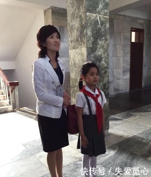 p照片显示一名韩国女导游与一名小女孩合影。韩国女导游喜欢穿商务服装和高跟鞋。/p