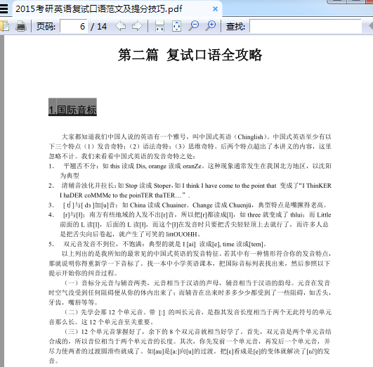 2015考研英语复试口语范文及提分技巧