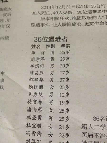 上海外滩踩踏事故:简阳一男子伸手救同事遇难