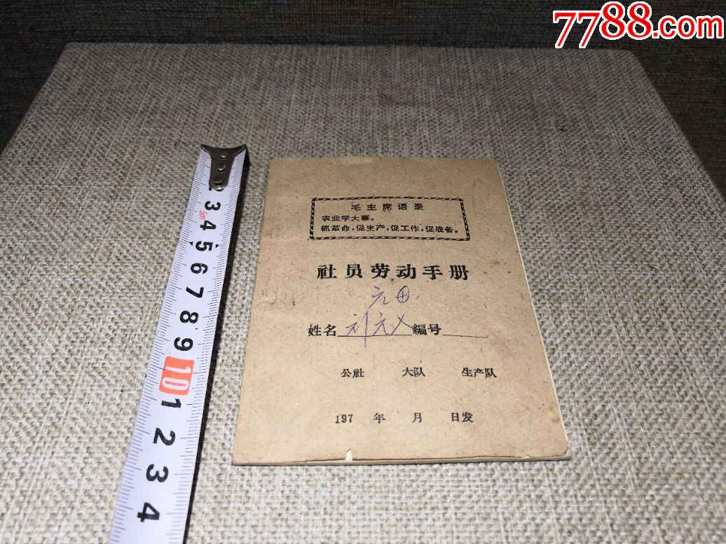 老票证收藏80年代带毛主席语录的社员劳动手