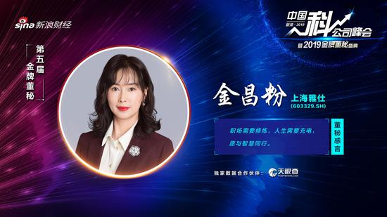 上海雅仕董秘金昌粉荣获新浪财经第五届金牌董