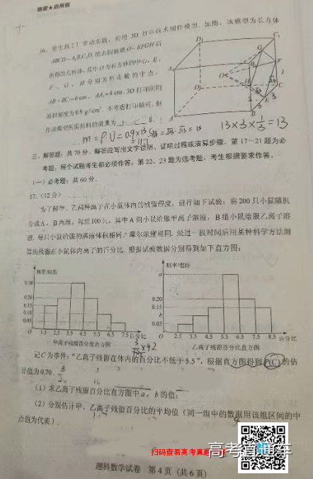 云南2019高考理科数学答案 云南卷(全国三卷)