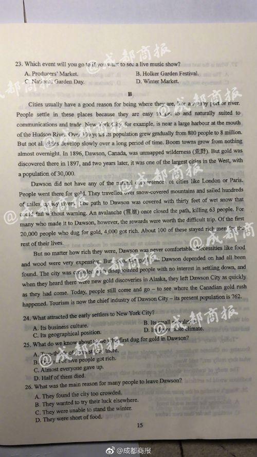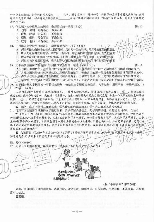 2018高考全国三卷真题! 所有学科+标准答案(清
