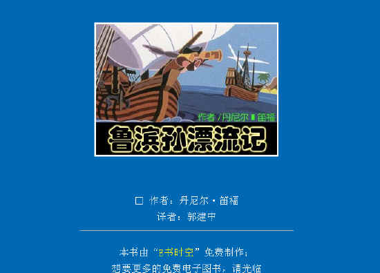 鲁滨孙漂流记电子书全本下载 亲爱的用户:如果您觉得《鲁滨孙漂流记TXT全集下载》不错,请在您常去的论坛推荐一下,在您的微博、微信写写对该电子书的感受,您的这些推荐