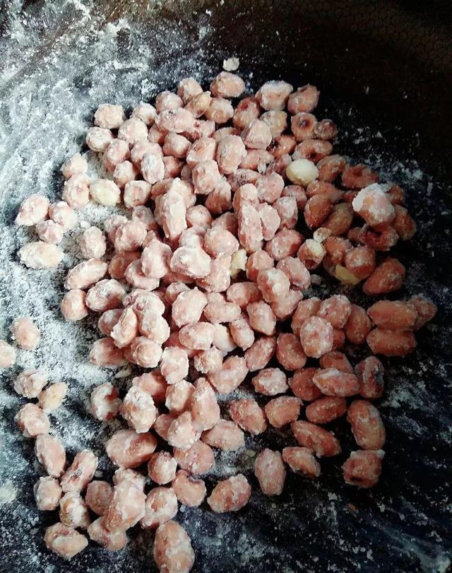 糖霜花生 1. 生的花生米放入锅中炒熟。.@