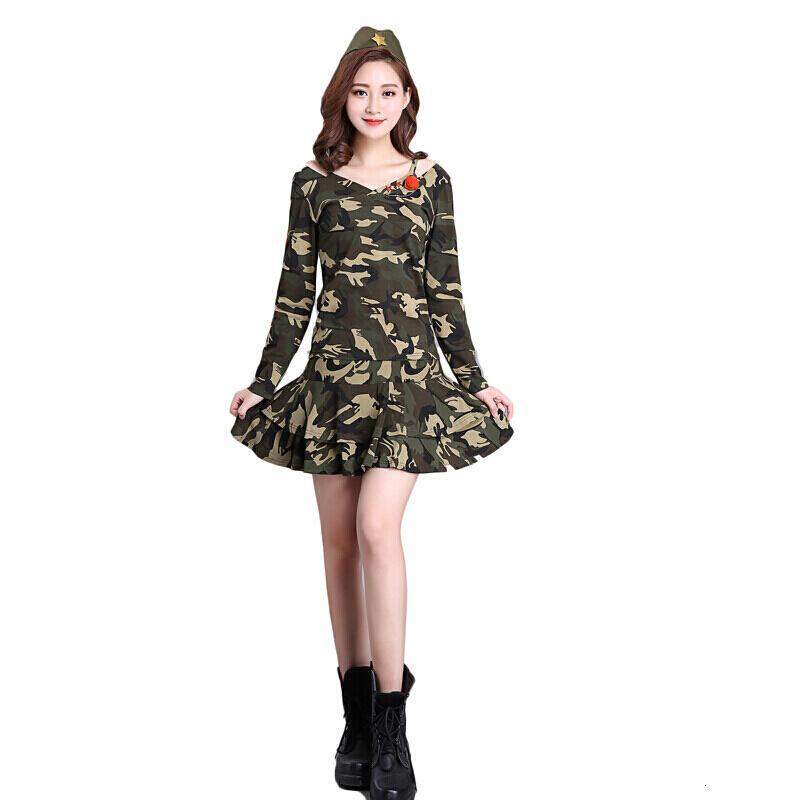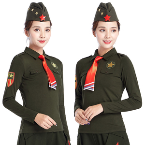 女 户外运动水兵舞服装军训迷彩服打底衫