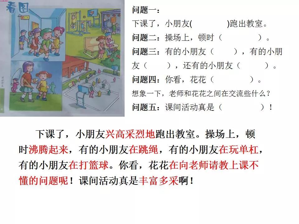 [最佳答案] 教孩子看图写话,不一定要用课本上的图片,你可以带孩子走进大自然,先让孩子观察,通过观察,再让孩子把自己看到的,所感受到的写下来就行,不一定要写的多好,语句通顺即可。