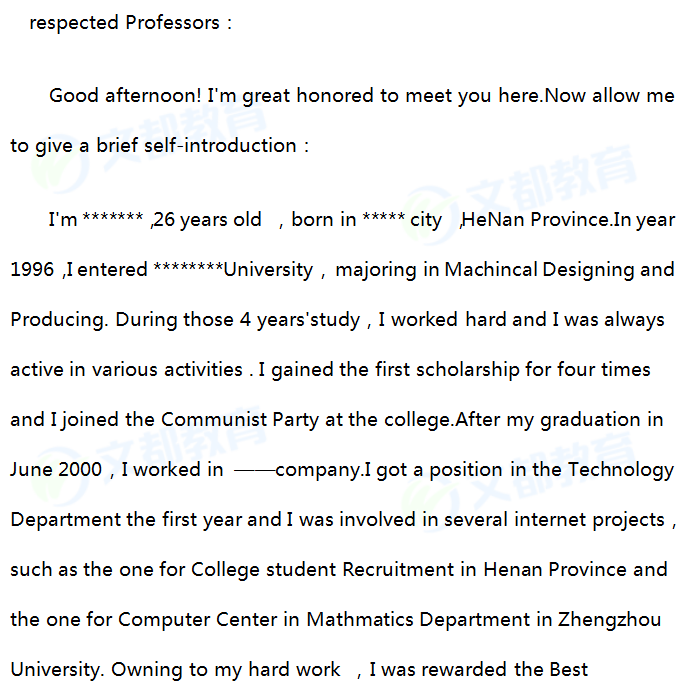 2018考研复试面试自我介绍范文(9) - 考研