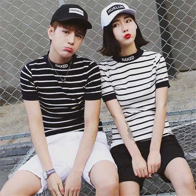 夏季情侣装_夏季情侣装短袖t恤潮韩版条纹
