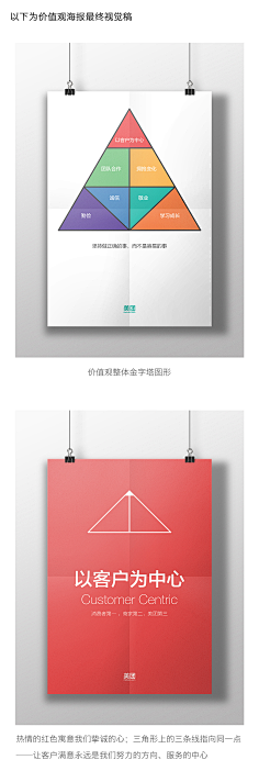 例如这次制作价值观的海报,我相信在很多公司,做海报就只是做海报那个设计的事情,通常的方法就是设计师做了几个版本,给老板挑,老板说OK了,就