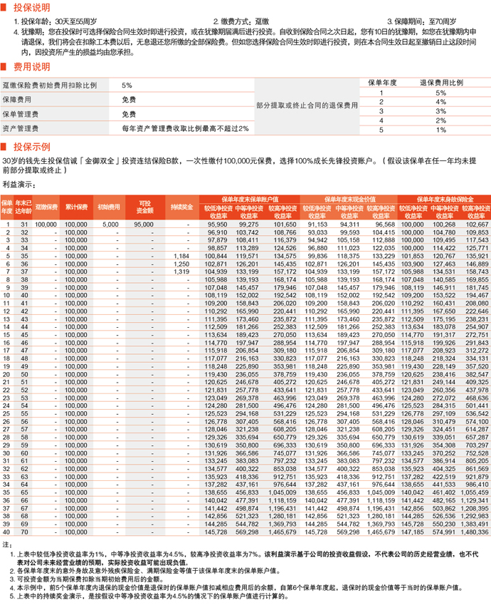 投资连结保险b款产品组合 信诚人寿福连金生投