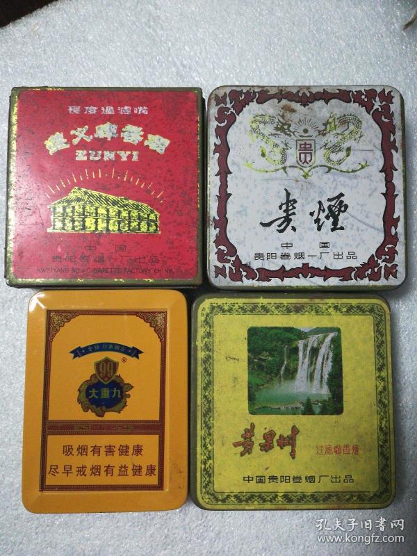 铁烟盒4个(贵烟 遵义牌香烟 大重九 黄果树