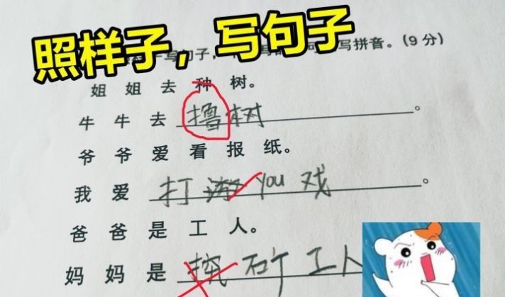 MC玩久了的后遗症,老师看小学生答题卷,