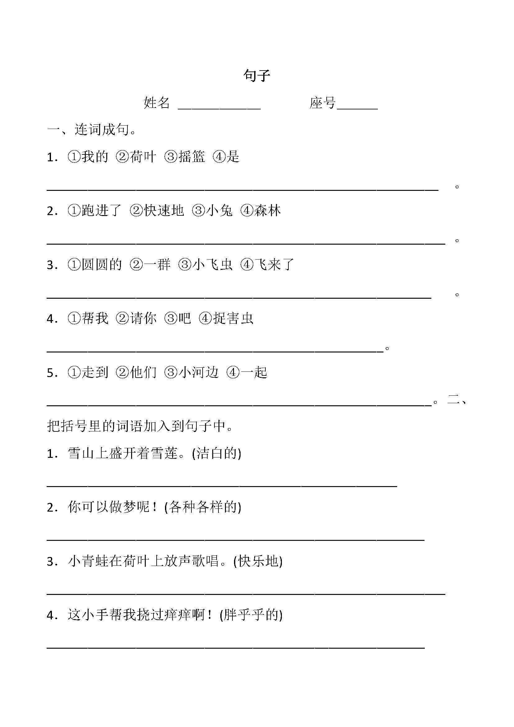 一年级下册语文句子专项练习,附答案