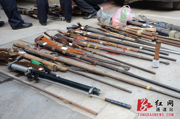通道警方集中销毁上百件枪支、管制刀具(