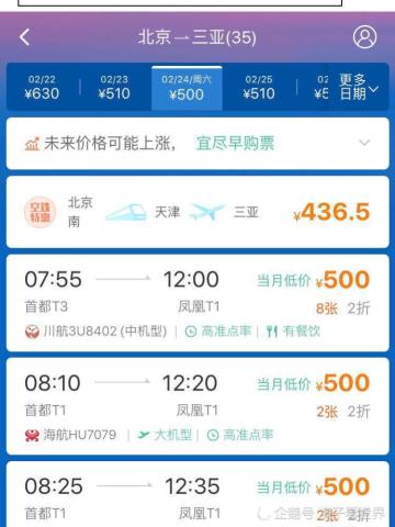 [最佳答案] 这个要看你们当地的票价多少,跟我们这边的票价有可能相差100块左右 你也没有定哪天的机票,具体的折扣说不来 播打你们当地的114查询航空售票处电话就可以得知哪一天到三亚的机票价格 多了解几家 不是每个定点航空售票处的价格都一样的50块左右