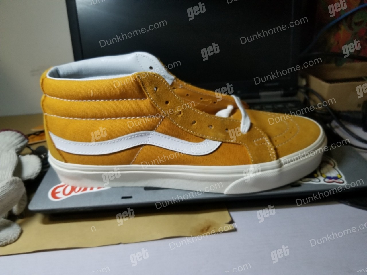 经典鞋款 Vans Sk8-Hi 1978年,设计师对Old skool进行改造,生产出了高帮版本vans,鞋口由三圈填充物组成,鞋跟也得到加强,能够给脚部最完美的保