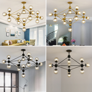 美式水晶吊灯后现代全铜创意设计师北欧样板间客厅卧室餐厅分子灯