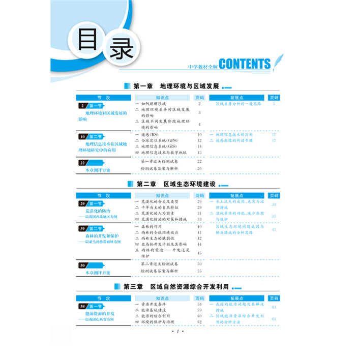 高中地理必修3第一章 地理环境与区域发展 第一节 地理环境对区域发展的影响 第二节 地理信息技术在区域地理环境研究中的应用 问题研究 地理环境为新加坡经济发展提供了哪些条件 章综合复习与测试第二章 区域生态环境建设 第一节 荒漠化的防治──以我国西北地区为例 第二节 森林的开发和保护─