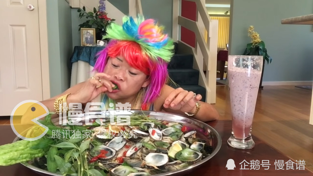 泰国大姐做吃播赚钱了,买了一盘巨型贻贝